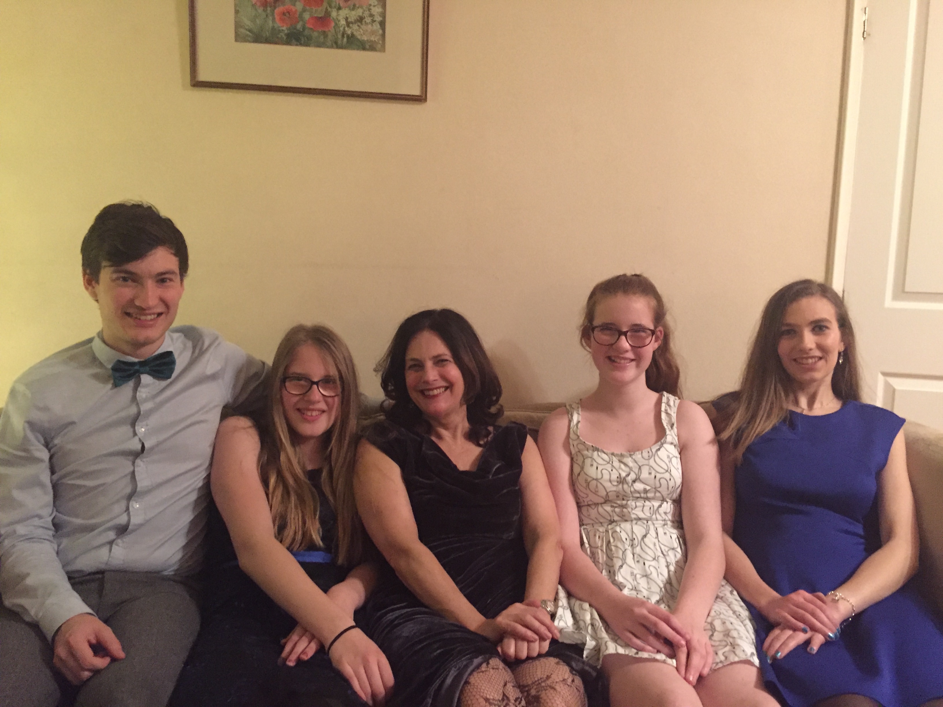 There will be changes at home too – only 1 of 4 children left at home! Sarah, our third is about to go up the road to study English and History at York Uni. She loves acting and directing and in her gap year has worked in various local theatres so wanted to study in York enabling her to keep these jobs going. Her two older brothers are also no strangers to the stage. Andrew is at Trinity Laban Music College training to be a Tenor and hoping to be a professional singer. Stephen, the eldest is a fifth year medic at Cambridge and is one of the writers/performers in the annual medics review.(Stephen and Andrew seen in the photos with their partners of 7 years) Peter (14, seen in the photo sharing the FA trophy glory with York city football club where we ares season ticket holders) is only too ready to remind me that I am the oldest Mum at school!. He is kept company by Milly, our somewhat crazy Border collie.